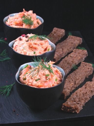 Ces rillettes peuvent être servies en apéritif ou en entrée : 1 grosse cuillère à soupe sur un lit salade de ciselée avec des tranches de pain grillé.
